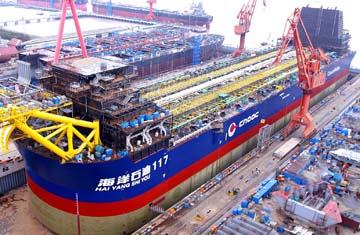 8日,我國迄今為止建造的噸位最大、造價最高、技術最新的30萬噸海上浮式生產儲油船“海洋石油117號”在上海外高橋造船有限公司順利下水。據悉,該船造價高達2.4億美元,船東是美國康菲石油公司,是我國出口美國的最大宗機電產品。