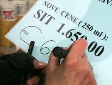歐元區候選國斯洛文尼亞預計將在明年1月1日正式使用歐元。與5年前許多西歐國家因加入歐元區而引發對舊貨幣的懷舊熱潮不同,斯洛文尼亞人平靜地接受了即將使用的新貨幣——歐元。在斯洛文尼亞的盧布爾雅那,一名商店工作人員在商品的價格標簽上加上歐元標價。