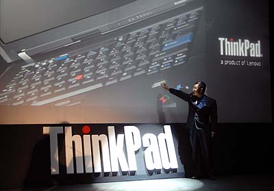 1月16日,聯想中國區Think業務部工作人員在發布會上啟動產品亮相儀式。當天,聯想集團中國區宣布推出一款寬屏ThinkPadT60筆記本電腦,這是聯想集團收購IBM個人電腦業務后,推出的又一款高端寬屏筆記本電腦,主要面向高端商務筆記本電腦市場。