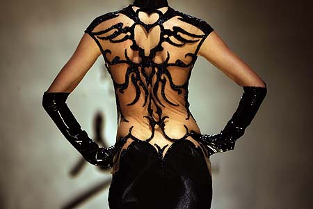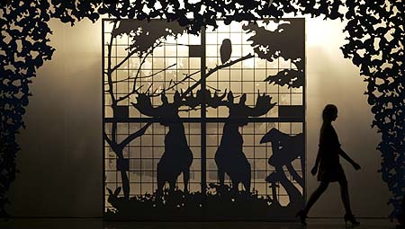 一名模特在巴西圣保羅2007秋冬時裝周上表演。這場表演的舞臺設計猶如剪紙造型。