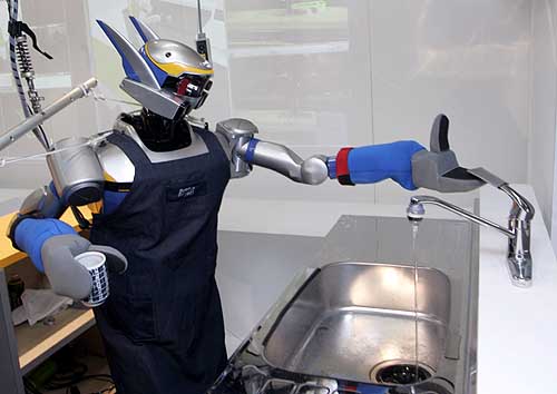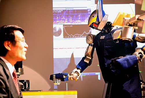 2月28日,日本東京大學研制的“HRP-2”機器人在該大學內演示向人提供茶水服務。這種機器人是專門用來做日常家庭服務的。