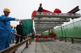 北京首都機場軌道交通線開始鋪軌
