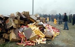 當日,安徽省巢湖市無為縣工商、質檢、藥監等部門聯手在該縣蜀山鎮舉辦假冒偽劣商品集中銷毀行動。執法人員還向現場群眾介紹識別假冒偽劣商品的方法。