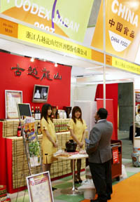 13日,一名觀眾在位于日本千葉縣的幕張國際會展中心內參觀中國食品企業展臺。為期3天的“中國食品貿易洽談會”當天在這里正式拉開帷幕,來自中國20多個省市的約60家食品企業參加了這次洽談會。