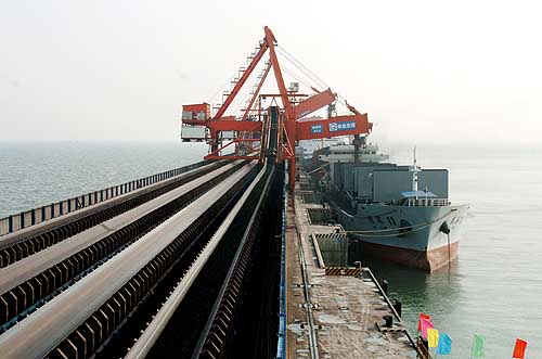 3月17日,一艘輪船停泊在秦皇島煤五期碼頭裝貨。當日,國家重點項目秦皇島港煤碼頭五期工程及河北省重點項目煤四期擴容工程通過了由交通部組織的國家驗收,正式投產。據了解,這兩項工程建設碼頭岸線總長達1700米,港口年通過能力達6500萬噸以上,規模之大,在中國和世界港口建設史上史無前例。
