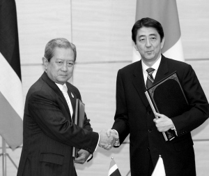 當韓美達成自由貿易協定(FTA)的時候,日本建立自己的全球貿易網絡的愿望變得前所未有的強烈。最近一段時間,日本政府高官們親自出馬,穿梭于各個場合,積極推動大小區域經濟合作。3日,日本首相安倍晉三與到訪的泰國總理素拉育舉行會談,并簽署了以自由貿易協定為核心內容的日泰經濟合作協定。與此同時,日本內閣官房長官鹽崎恭久也透露, 日本的視野開始變得更為廣闊,不但積極謀求與韓國重啟自貿談判,還積極與美國、加拿大、新西蘭等國進行接觸,以期為進一步達成自貿協議做好鋪墊。經財大臣大田弘子則表示,正在審視日美建立FTA的“利與弊”。