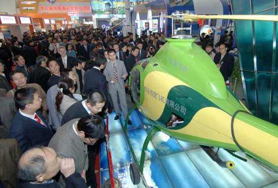 4月6日,客商們饒有興趣在一架輕型直升飛機前觀看。當日,為期五天的“第十一屆中國東西部合作與投資貿易洽談會”在西安揭幕。本屆洽談會吸引了來自美國、加拿大、英國、法國、德國、日本、韓國等50個國家和地區的4000多位境外客商及國內31個省區市的1萬多家企業,預計參會參展的境內外客商人數超過10萬。