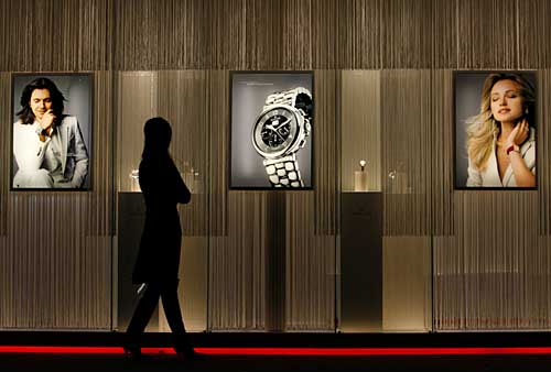 12日,一名女子參觀瑞士巴塞爾國際鐘表和珠寶展。當日,一年一度的巴塞爾國際鐘表和珠寶展開幕。這是世界上此類展覽中規模最大的,被視為全球奢侈品市場的年度風向標。本次展覽將于4月19日結束。