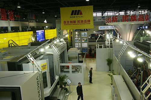4月14日拍攝的展廳一角。第十屆中國國際機床展覽會4月9日至15日在京舉行,該展會是國內規模最大、水平最高的專業國際機床工具展覽會,共有來自28個國家和地區的1100余家機床工具企業和研究機構參展。
