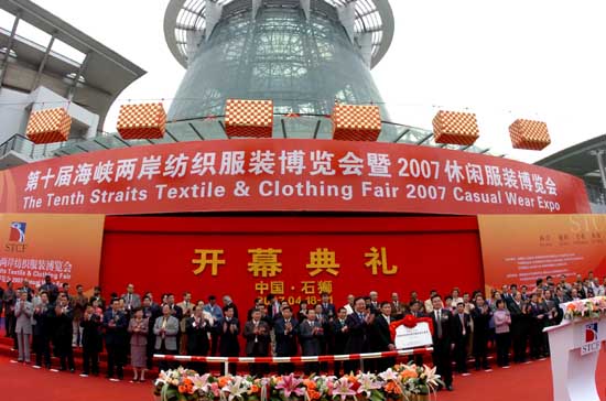 4月18日,第十屆海峽兩岸紡織服裝博覽會暨2007休閑服裝博覽會在福建石獅市開幕,近3萬名海內外客商參加展會。