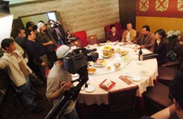 由河北省石家莊市西兆通鎮的村民郝俊臣與五個農民朋友籌資50萬元,自拍、自導、自演的高清晰電影《山杏》近日在石家莊市緊張拍攝。該影片描寫的是河北貧困山區的女孩山杏考上大學,在村民的幫助下交上學費,畢業后她婉言謝絕男朋友的挽留,毅然回到家鄉,用學到的農業科學知識幫助鄉親們致富的故事。影片中主要演員有六人是土生土長的農民。據了解,這部電影是廣電總局立項批準的中國農民自己拍攝的第一部高清晰電影。圖為電影《山杏》的一個拍攝場景。