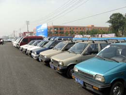 4月22日,為紀念第38個“世界地球日”,成都市舉行“整治機動車尾氣 報廢高污染車輛 改善大氣質量”主題活動。自2006年9月成都對高污染汽車實行城區限行以來,共轉出、報廢未達標的高污染汽車13000多輛。圖為即將被拖到報廢廠的高污染車輛。