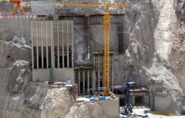 從20世紀80年代以來,青海省不斷加快黃河水電資源開發步伐,已在境內相繼開工建設了龍羊峽、李家峽、尼那、公伯峽、直崗拉卡、蘇只、康揚、拉西瓦等大中型水電站,黃河青海段建成使用和在建的水電站總裝機容量已達1200多萬千瓦。2020年前,青海省將基本完成黃河上游龍羊峽以下河段13座大中型水電站建設,使青海成為國家“西電東送”的重要電源基地之一。圖中的拉西瓦水電站位于青海省貴德縣與貴南縣交界的黃河干流上,電站總裝機容量420萬千瓦,是黃河流域裝機容量最大的水電站。 |