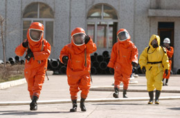 4月25日,身著防護服的消防隊員走出事故現場。當日上午9時左右,黑龍江省依蘭縣自來水廠一車間內發生氯氣泄漏,當地已成立緊急指揮部疏散附近群眾。目前,氯氣泄漏已經得到控制。