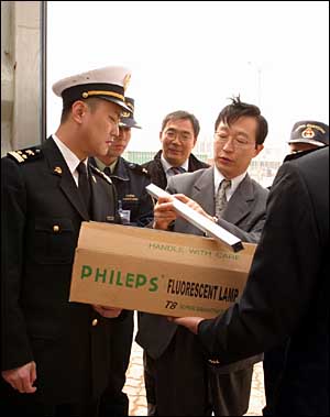 “作為跨國公司,比較全球16個設廠國家,我們認為中國海關在知識產權保護方面做的最好!”2007年4月20日,專程飛抵大連的飛利浦(中國)投資有限公司知識產權及標準部高級總監鐘清明高度評價了中國海關的知識產權保護工作。原來,2006年10月12日,經大連海關全面調查,認定沈陽新星公司出口的熒光燈管上使用的商標,因與權利人注冊的“PHILIPS”商標近似,已構成侵權。該關根據有關條例對其進行了處罰,由此保護了飛利浦(中國)的權益。
