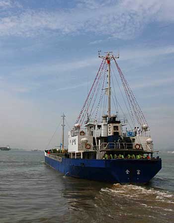 5月15日,澎湖“全富輪”滿載1600噸碎石駛離福州連江縣琯頭對臺貿易碼頭。5月15日,福州至澎湖貨運直航首航儀式在福州連江縣舉行,這是福建沿海與澎湖實現貨運直航常態化的首次直航。