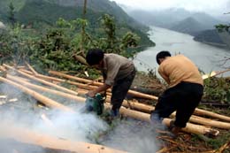 這是林場民工在英德長湖國家森林公園砍伐林木。