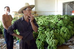 5月24日,海南瓊海市塔洋鎮農民面對低迷的香蕉價格愁容滿面。近日,關于“香蕉含類似SARS病毒”的信息在國內部分手機用戶間流傳。農業部市場司副司長張興旺認為,“香蕉含類似SARS病毒”的說法是沒有任何科學依據的,純屬謠言。海南香蕉市場因這條短信出現波動,雖銷量沒什么影響,但是在價格上每500克下降了0.1至0.2元。