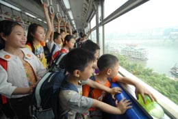 5月29日,20名受助的山區貧困兒童乘坐輕軌列車觀賞沿途風景。當日,重慶市慈善總會開展“情系山區兒童‘六一’手拉手”活動,將20名受助的銅梁縣山區貧困兒童接到城市里,組織他們參觀動物園、乘坐輕軌列車,還贈送給孩子們學習用品等節日禮物。