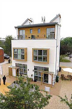這也是英國第一座將來能夠大規模推廣的生態住宅,其環保設計能減少80%的燃料費開支,每年可為住戶節約能源費開支800英鎊。英國政府有規定,購買售價為12.5萬~25萬英鎊的不動產,消費者需繳納大約1%的印花稅。但如果花20萬英鎊購買類似生態住宅,就可免繳2000英鎊的印花稅。 候任英國首相戈登·布朗上周也宣布,英國計劃將推出2000套類似的生態住宅。 公司總裁斯圖亞特·米爾恩表示:“這是未來5年內能大規模推廣到市場的原創性生態住宅。而該住宅一旦大規模推廣,這種建筑就可能被授予‘六星級’最高星級的認證!边@座生態住宅的造價還不清楚。但公司方面稱,其成本不會高于傳統的磚式或鋼筋混凝土式住宅。 |