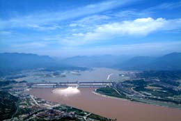 三峽大壩全景圖(6月24日攝)。由于近期三峽水庫入庫流量猛增,目前三峽電廠15臺機組全部啟動發電,全廠出力達到1010萬千瓦,創造了三峽電廠自接機發電以來的最大出力。
