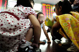 7月3日,幾名小朋友在合肥一家證券營業部內玩耍。近日,許多假期里的孩子被炒股的家長帶到證券營業部,家長關注著股市,孩子們則在營業大廳內玩耍。有關人士認為,人多繁雜的證券營業部對孩子的成長不利,呼吁家長讓假期里的孩子遠離股市。