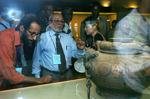 7月4日,非洲國家工商代表團在湖北省博物館參觀。當日,由21個非洲國家的49位國家商貿管理部門、工商會和投資促進機構的高層管理人員組成的非洲國家工商代表團參觀考察了湖北省博物館和長飛光纖光纜有限公司。