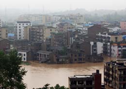 7月17日,重慶市沙坪壩區陳家橋鎮被洪水圍困。7月16日午后開始,重慶市發生罕見特大暴雨,平均降水量達200多毫米,其中沙坪壩區陳家橋鎮地區降水量達350毫米。截至目前,陳家橋鎮與外界交通已全部被洪水阻斷,總計約近萬人被洪水圍困?购榫葹恼谟行蜻M行中。