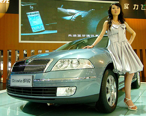 7月22日,一名車模在展示一款新車。當日,第五屆中國長春國際汽車博覽會在長春國際會展中心閉幕。