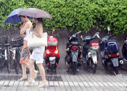 7月29日,兩位女士在雨中行走。當日,上海持續約半小時的陣雨并未緩解暑熱。據上海中心氣象臺消息,當日上海最高氣溫達39.6攝氏度,為今夏最高紀錄。