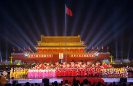 8月8日晚,北京2008年奧運會倒計時一周年慶;顒釉谔彀查T廣場舉行。