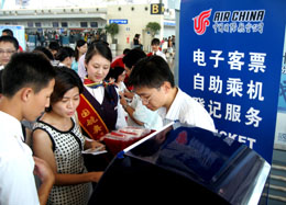 當日,國航在重慶、貴陽等地機場同時開通個性化自助值機服務,凡是購買國航電子客票的旅客通過機場設置的自動值機就可自行辦理乘機登記手續。據了解,自助值機服務可以滿足旅客自行選擇客艙座位的需求,也能夠節省旅客排隊辦理登機手續的時間。
