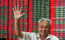 23日,在江蘇揚州一證券交易大廳內,一位股民興奮地打著“5”的手勢,慶賀上證綜指開盤突破5000點整數關口。當日,上證綜指開盤承接22日升勢跳空高開,一舉突破5000點大關,最終報收于5032.49點。