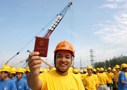 當日,上海寶山區的數百名建筑業農民工代表領到了工會會員證。據悉,上海將在全市推廣建筑業農民工集體加入工會工作,今年內加入工會的建筑業農民工將達40萬人。