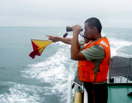 9月2日,浙江海警一支隊官兵在海上進行搜救工作。當日凌晨2時,浙江溫州海域發生一起沉船事故,一艘韓國籍貨輪與一艘中國籍漁船相撞,中國漁船當場沉沒,七名船員全部落水。截至9月2日16時30分,已有一人獲救,其余六人仍下落不明。