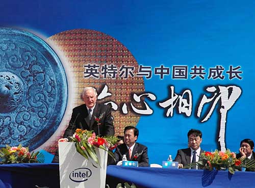 9月8日,美國英特爾公司大連芯片廠奠基典禮在大連經濟技術開發區舉行。根據中美雙方簽訂的合作協議,美國英特爾公司大連芯片廠首期投入25億美元,項目建設期為5年。正在大連參加夏季達沃斯年會的美國英特爾公司董事會主席克瑞格·貝瑞特、大連市市長夏德仁出席奠基典禮出席奠基典禮。這是美國英特爾公司董事會主席克瑞格·貝瑞特在典禮上致辭。