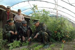 9月11日,武警官兵向巴克一家傳授蔬菜種植經驗。新疆塔什庫爾干縣塔合曼邊防派出所今夏為塔吉克族牧民巴克一家無償搭建的“愛民溫室”,9月份已經小有收獲,巴克成為帕米爾高原第一家擁有自己的蔬菜溫棚的牧民。近年來,新疆的高原牧民開始改變以往的單一飲食習慣,逐漸接受并掌握蔬菜種植技術。