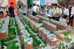 9月13日,2007秋季河南住房展示交易會在河南鄭州開幕,來自河南各地市的幾十家房產商參加了本次交易會。這是市民在觀看樓盤模型。