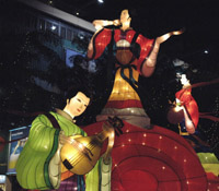 這是12日在新加坡牛車水的街道上拍攝的人物造型的彩燈。隨著中秋節的臨近,新加坡的唐人街——牛車水也裝飾上璀璨的彩燈,以嶄新的面貌迎接佳節。