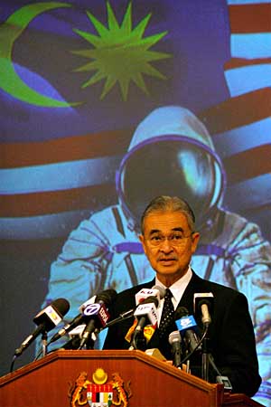 24日,在位于吉隆坡以南30公里處的普特拉賈亞,馬來西亞總理巴達維宣布馬來西亞兩名宇航員候選人之一的謝赫·穆扎法爾·舒庫爾將是馬來西亞首位進入太空的宇航員,他將于10月10日乘坐俄羅斯飛船前往國際空間站工作。