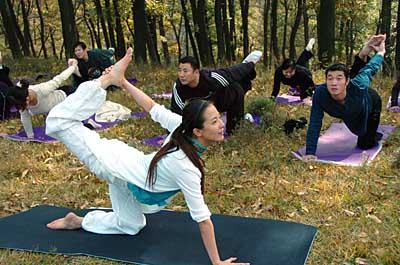 日前,“百人戶外瑜伽體驗”活動在濟南藥鄉國家森林公園舉行。約百名瑜伽愛好者在專業老師的帶領下練習瑜伽,在美麗的大自然中舒緩疲勞,陶冶身心。