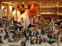 10月25日,一位外國采購商在觀看圣誕飾品。