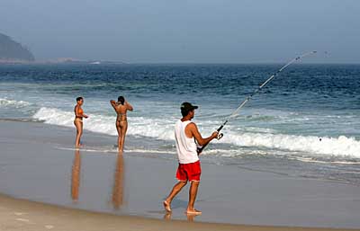 10月30日,一名男子在巴西里約熱內盧的海灘釣魚。盡管這里還處在春季,但溫暖舒適的天氣使得當地居民已經提前享受到充滿陽光的海灘生活。