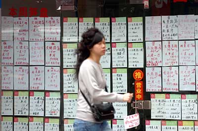 11月1日,一位女士從廣州一家房地產中介公司櫥窗前走過。廣州市政府規定從當日起,廣州無論一手還是二手房地產出售時都要將出售房屋基本信息和包括代收代管費在內的所有收費項目、標準和依據全部在經營場所醒目位置采用價目表牌等形式公開標示,并且房屋售價必須提前24小時公示。