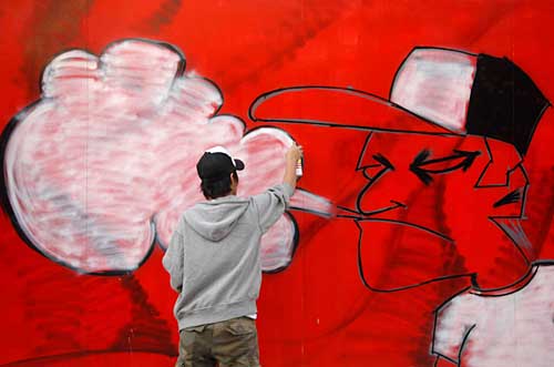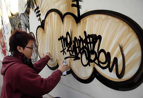 中國首屆涂鴉魅力藝術展近日在北京中國國際展覽中心亮相。展覽基本覆蓋了國內涂鴉創作優秀團隊及個人的作品,很多作品帶有濃烈的地域特征和文化色彩。不少團隊還現場進行了涂鴉創作。