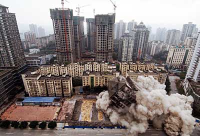 12月6日,位于重慶市江北區歐式一條街的“爛尾樓”米蘭大廈A棟25層塔樓被成功爆破拆除,這是迄今為止重慶主城區用爆破方式拆除的最高建筑。米蘭大廈于1997年開工建設,2000年工程停工成為爛尾樓,后被有關部門認定為危房。據悉,在爆破拆除之后,開發單位將在原地建設一高一低雙塔樓高檔商務公寓。