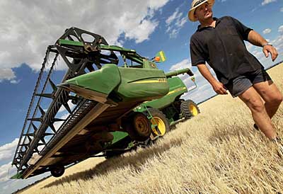 在澳大利亞的新南威爾士州,一名農場主走在長勢枯矮的麥地里(攝于11月12日)。澳大利亞正經歷著有史以來最嚴重的旱災,農作物因此嚴重歉收。