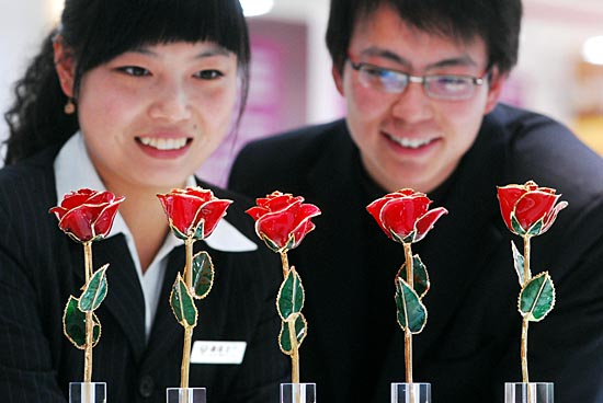 新年之際,山東煙臺市一些金行推出“鍍金玫瑰”,吸引了眾多年輕人的眼球。