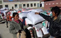 12月27日,西藏達孜縣達杰鄉農民次央(左)等準備向食品公司出售青稞。