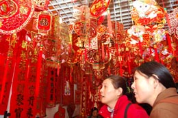 1月9日,兩位合肥市民在合肥城隍廟選購年貨。